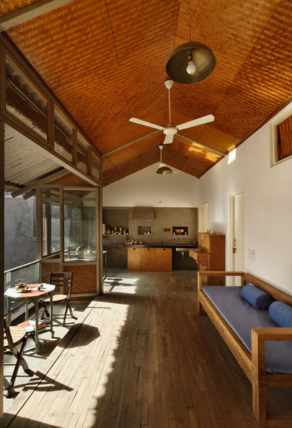 Janakee Sadan is an urban retreat for family who migrated from their native. The whole edifice is a combination of old and new: spaces, materials, craft and technology.